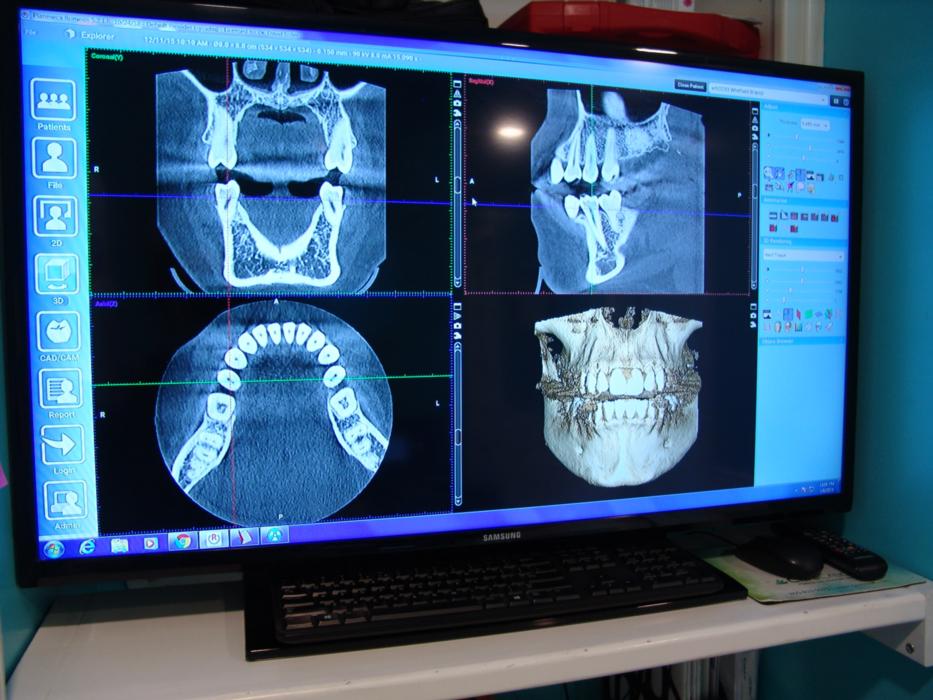 This allows us to see your teeth and jaw in cross-sections which enables us to identify infections and abnormalities that can not be seen on conventional X-Rays.
